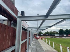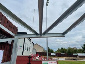 Among the key projects we’ve supported is the installation of bespoke gates at the entrance to the ground. These gates not only improve security but also add a stylish, welcoming touch to the venue. Additionally, we’ve helped create sheltered areas with seating, providing fans and visitors with comfortable spaces to enjoy matches, rain or shine.